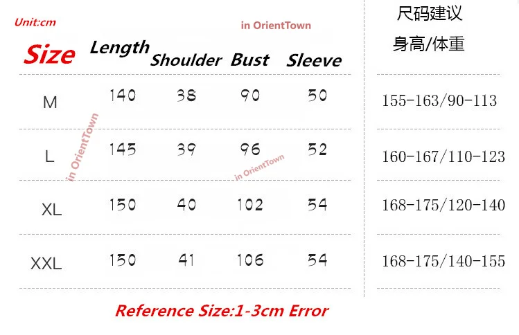 Size chart(For reference)Unit cm (1cm=0.39in) Or (2.54cm=1"inch)